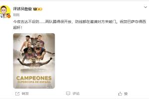 体育资讯01月12日讯 西超杯决赛,巴萨3-2击败皇马夺冠。赛后,评述员詹俊发文点评。