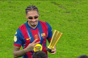 体育资讯01月12日讯 西班牙超级杯决赛,巴塞罗那3-2击败皇家马德里,拉菲尼亚本场比赛贡献双响率队夺冠。