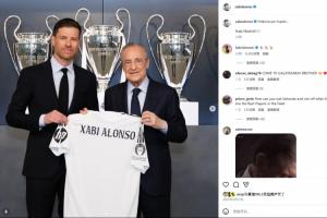 阿隆索社媒置顶仍是签约皇马时的动态,并配文:历史正待书写...Hala Madrid!!🤍