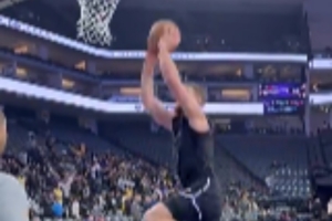 赛前,国王内线小萨博尼斯进行了有球训练,看起来状态不错。