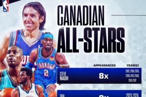 体育资讯1月15日讯 NBA Canada晒出了历史上入选过全明星的加拿大球员。
