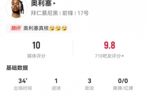 下一篇: 德甲替补上演助攻帽子戏法!奥利塞是历史第二人,首位是里贝里