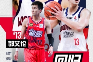 郭艾伦将于1月23日广州龙狮主场对阵南京的比赛正式复出!