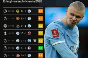 本场比赛哈兰德未能打破进球荒,本场赛后评分也仅有6.2分。他在2026年的7场各项赛事仅是在对阵布莱顿比赛中打进一粒点球,且7场比赛sofa评分最高也只有7分。