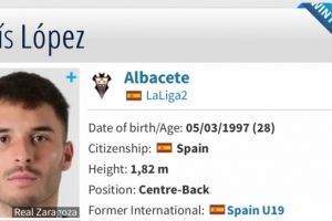 在路易斯·洛佩斯个人的德转页面中显示,他已经与1月21日加盟阿尔瓦赛特,合同有效期至2027年6月30日,转会方式为自由身。