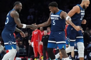 森林狼和隔壁火箭略像:长人锋线群的防守,进攻最后就指着一个人。