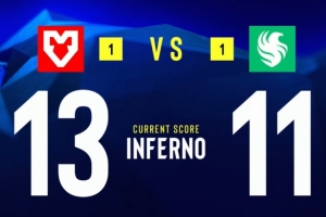 上半场MOUZ先攻,手枪局MOUZ五人来A中,四人飞A二楼,猎鹰四人看A,A点刚枪,torzsi双杀,MOUZ三换四在A下包,残局Niko一打二,包点连接小吉米击杀Niko,MOUZ1-0猎鹰。