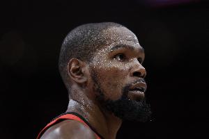 GIF-杜兰特三分犯规 哈里斯3罚2中