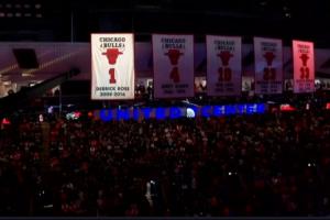 GIF-罗斯和家人们一起升起自己的公牛1号球衣