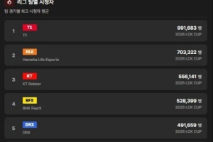 体育资讯1月27日讯 GEN只排第六?LCK杯平均收视率:T1位居第一HLE第二
