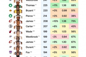 下一篇: 冈萨雷斯本赛季正负值+219 断档新秀第一 第二是哈珀的+96